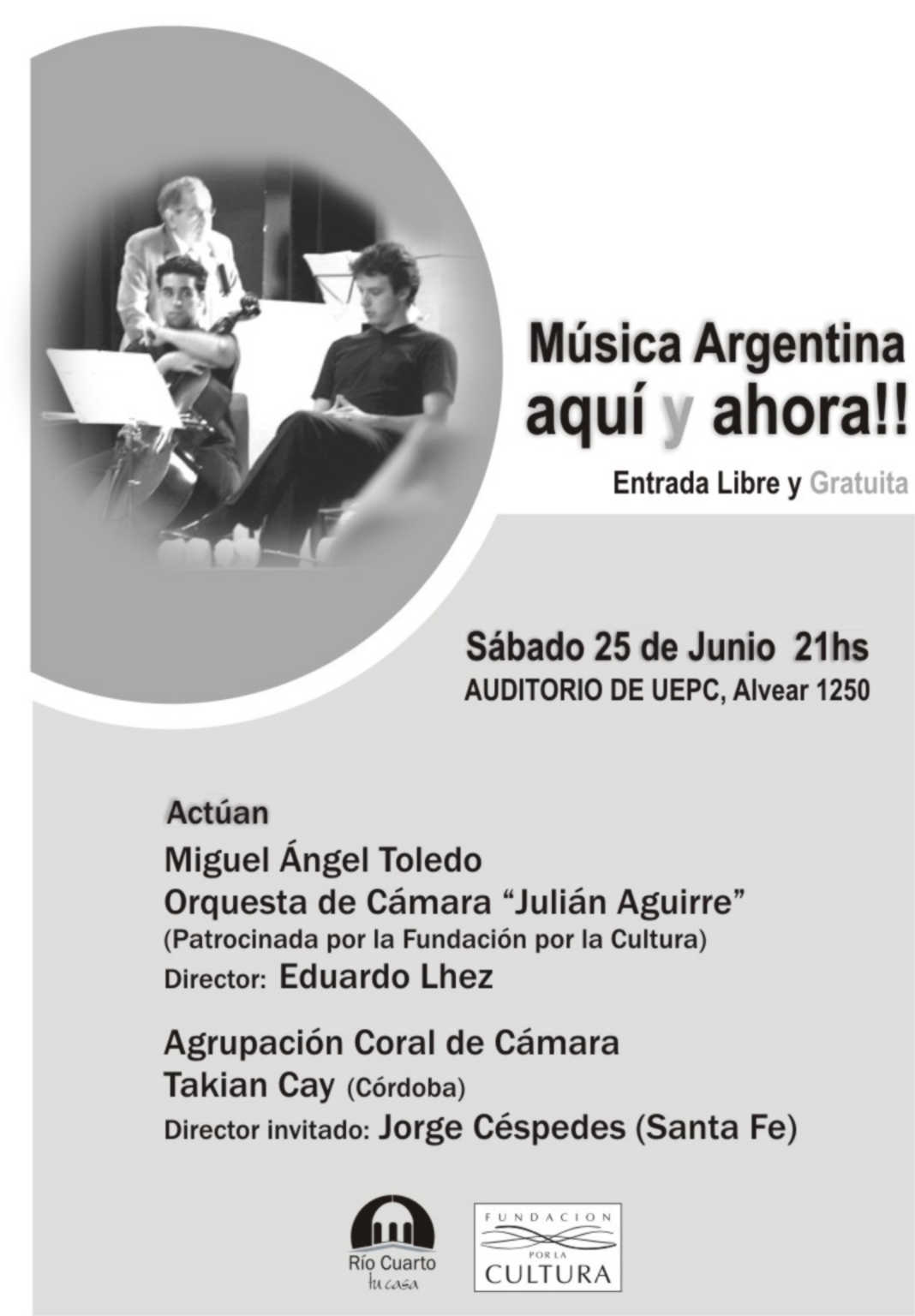 | “Ser, existir en el canto” es el lema al que suscribe Takian Cay, una fundación cuya principal expresión está dada por una agrupación coral de cámara, fundada en 1991, y que subsume en su actividad los objetivos de la fundación para promoción y difusión de la música en todas sus formas y géneros. Esta noche, a las 20.30, el coro de Takian Cay, que regularmente está dirigido por Elizabeth Burba, subirá a escena en el auditorio Carlos Ortiz de la sede integral de La Voz del Interior, con una función extraordinaria, en este caso dedicada a un repertorio de música antigua española y bajo la direcci ón del maestro granadino José Palomares Moral. |